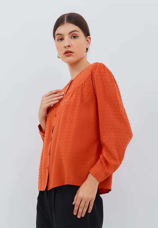 Osella Lunar Long Sleeve Shanghai Collar Blouse in Orange