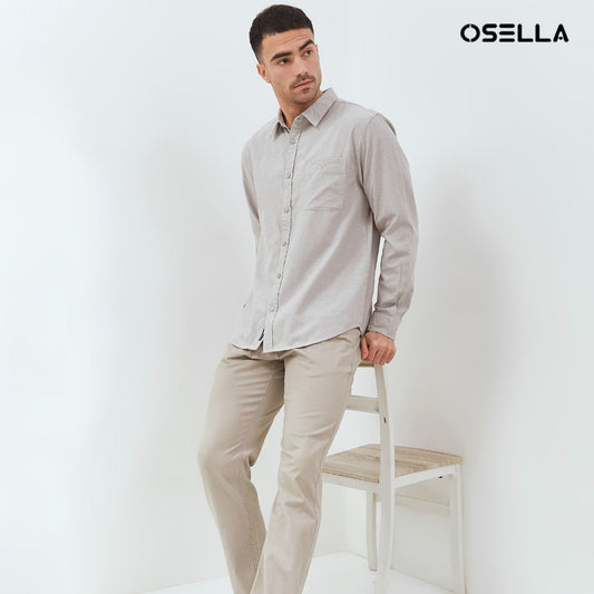 Osella Kai Solid Long Sleeve Collared Shirt 20375016 | Kemeja Lengan Panjang Pria