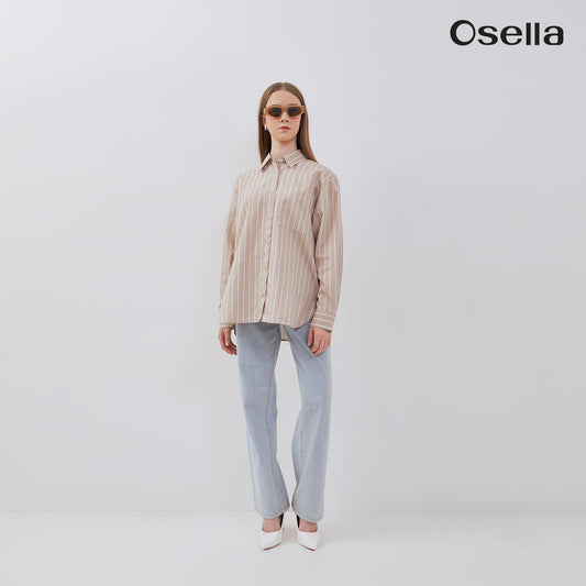 Osella Lucy Reguler Fit Stripe Shirt 21375013 | Atasan Wanita Garis Lengan Panjang
