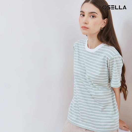 [NEW] Osella Striped T-shirt In Sage And White 2171400867 | Kaos Wanita Lengan Pendek