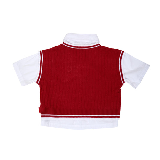 Osella T-shirt With Combination Stripe Knitting Vest In White