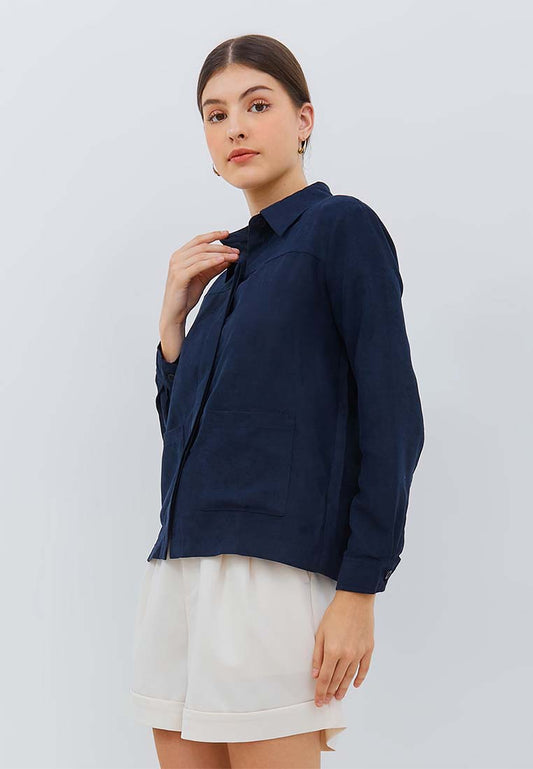 Osella Shacket with Pocket in Front in Navy