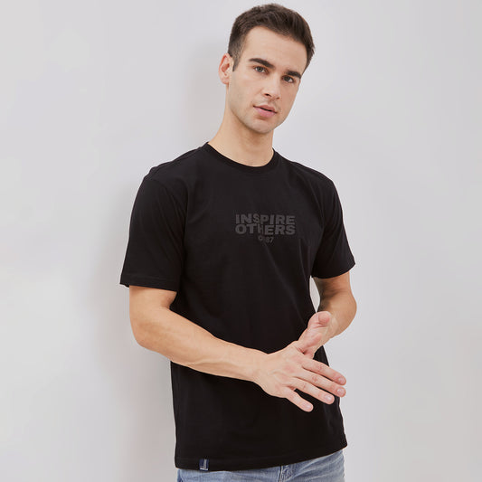 Osella Regular Fit Tone On Tone Print Short Sleeve T-shirt In Black