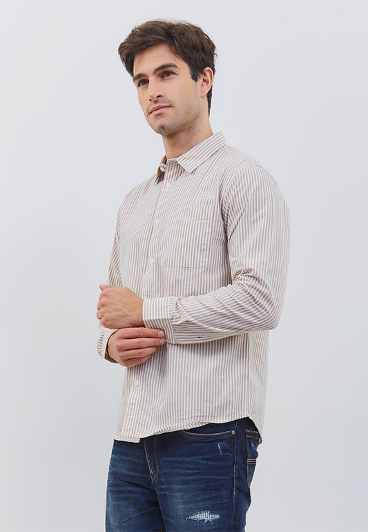 Osella Regular Fit Stripe Shirt In Khaki And White Pattern