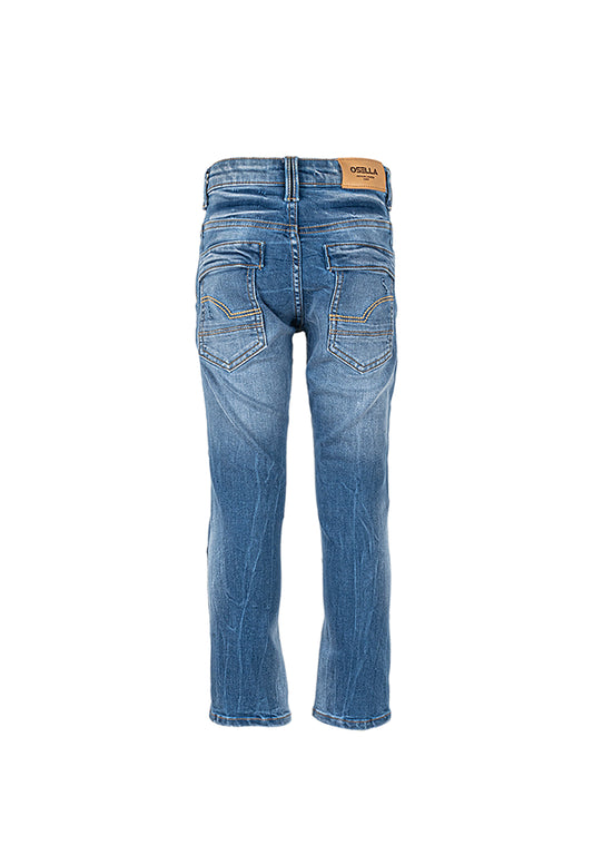 Osella Kids Slim Fit Long Denim Pants In Medium Blue Wash