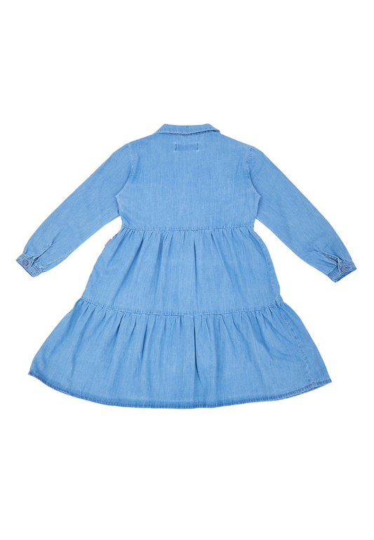 Osella KIds Denim Cuban Collar Midi Dress In Medium Wash Denim