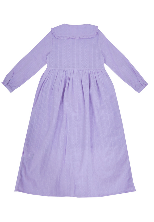 Osella Kids Long Sleeve Ruffled Collar Maxi Dress In Textured Lilac Fabric