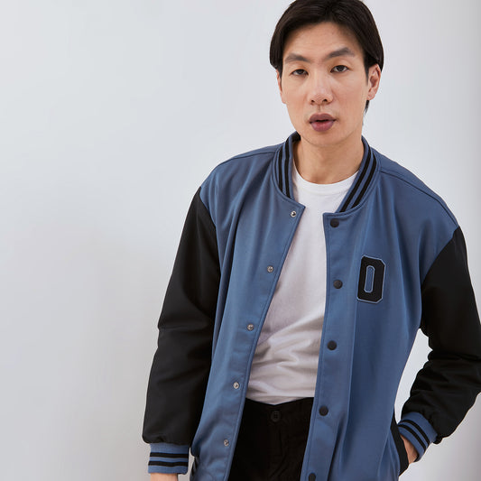 Osella Jin Varsity Jacket In Smoke Blue And Black Combination