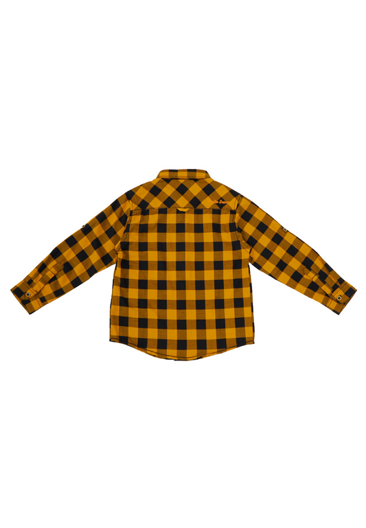 Osella Kids Boy Desert Checkerd Regular Long Sleeve Shirt In Mustard And Black