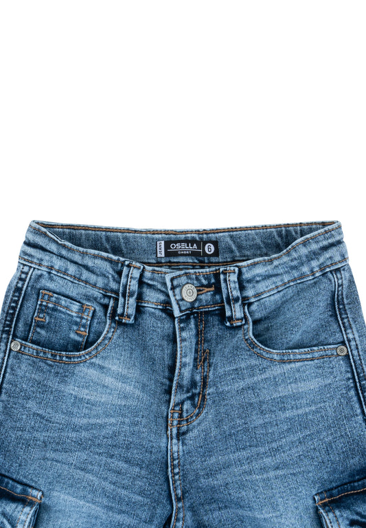 Osella Kids Short Denim Pants In Medium Blue Wash