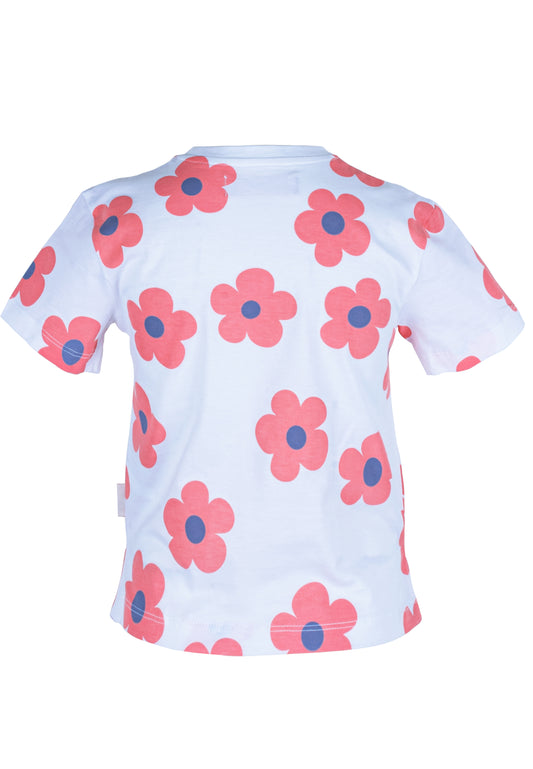 Osella Kids Floral Print Short Sleeve T-Shirt In White