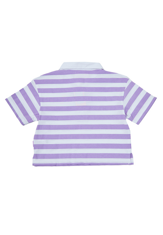 Osella Kids Polo Neck T-Shirt In Lilac And White Stripes