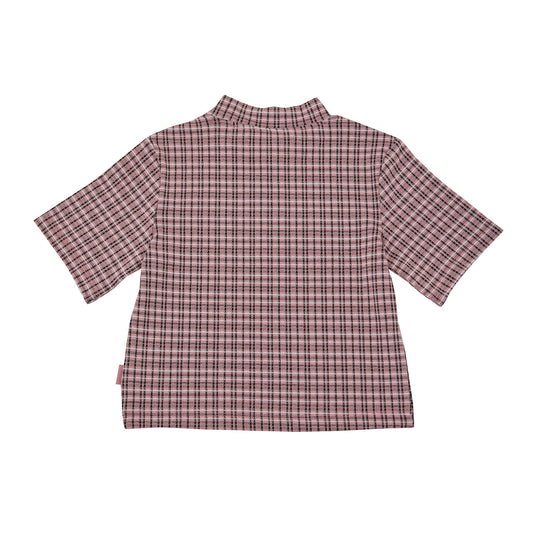 Osella Plaid Pattern Mock Neck T-shirt In Pink