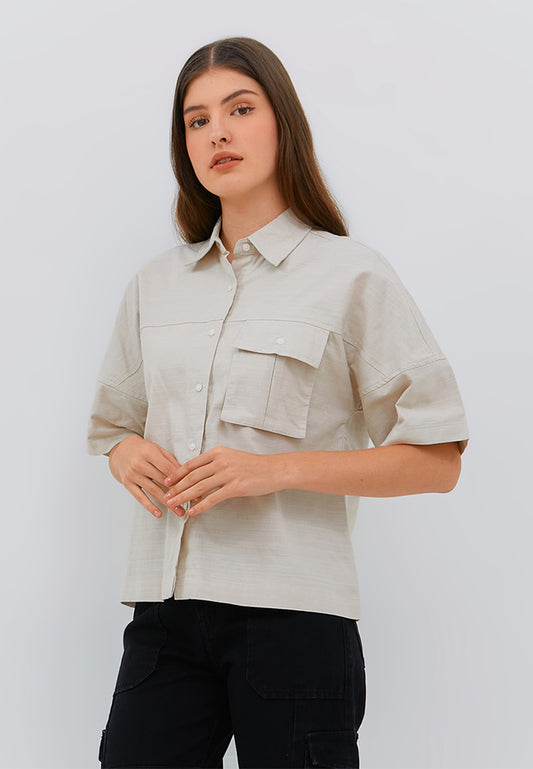 Osella Ladies Short Sleeve Boxy Shirt With Pocket In Ivory