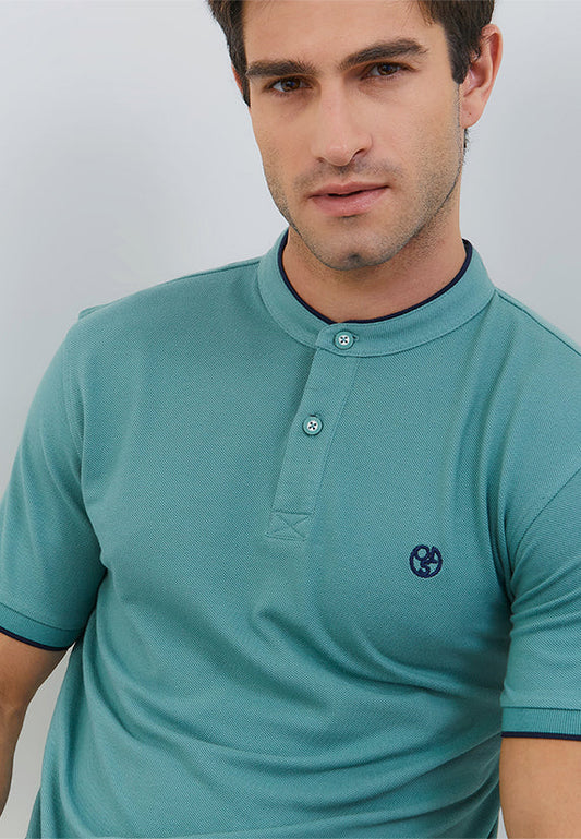 Osella Long Sleeve Polo Shirt With Contrast Collar in Bottle Green And White 2027400401
