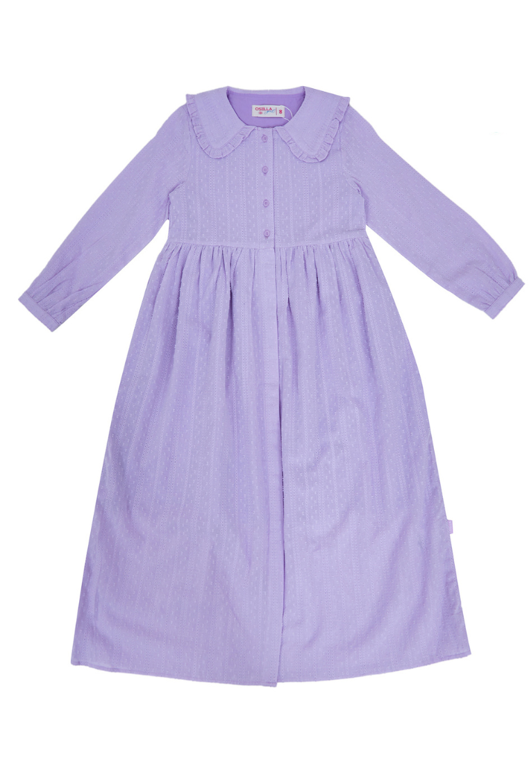 Osella Kids Long Sleeve Ruffled Collar Maxi Dress In Textured Lilac Fabric