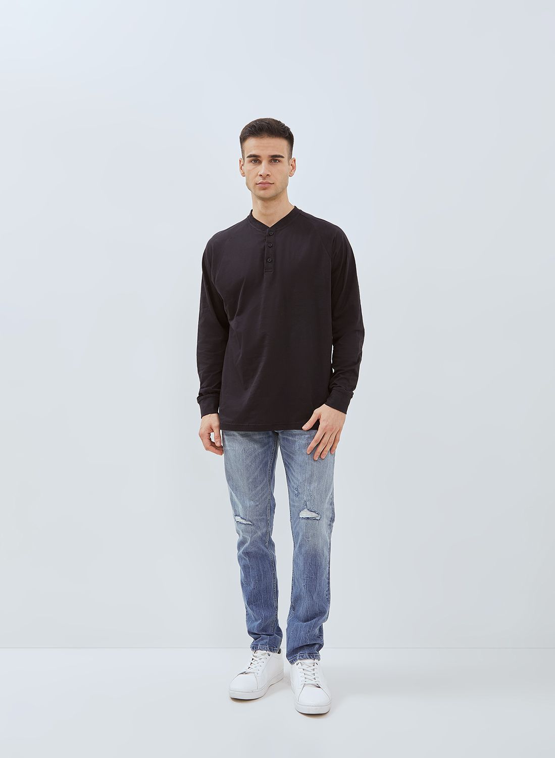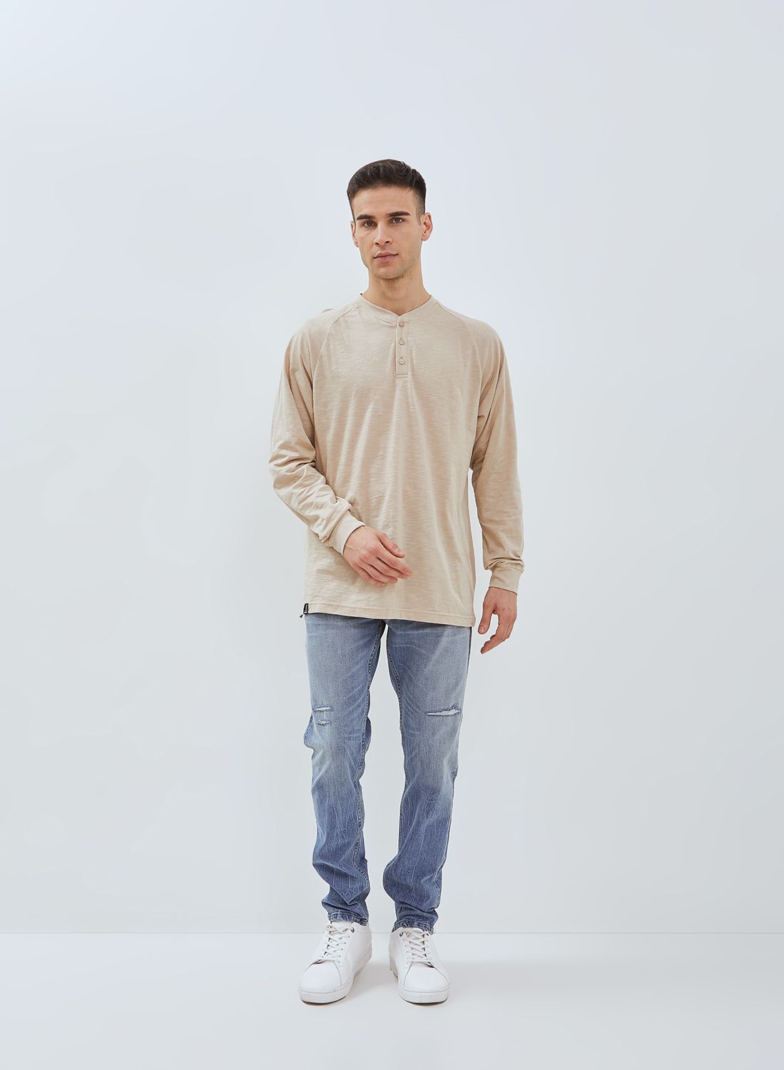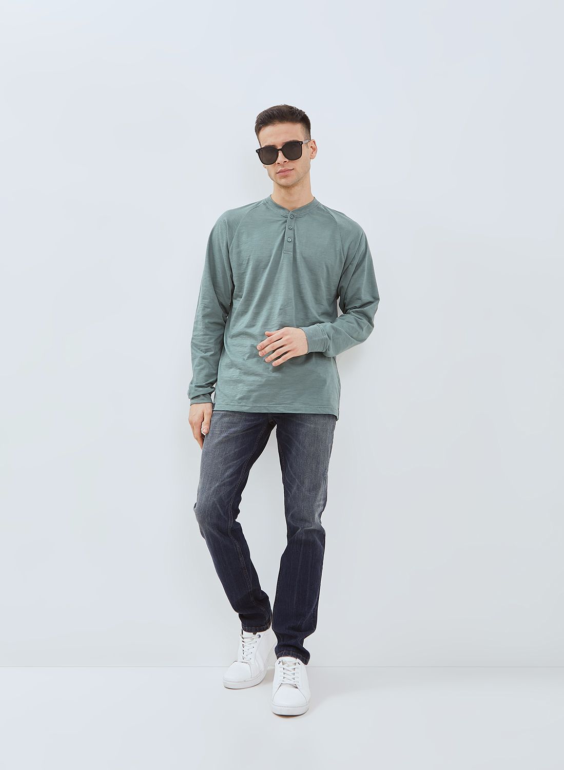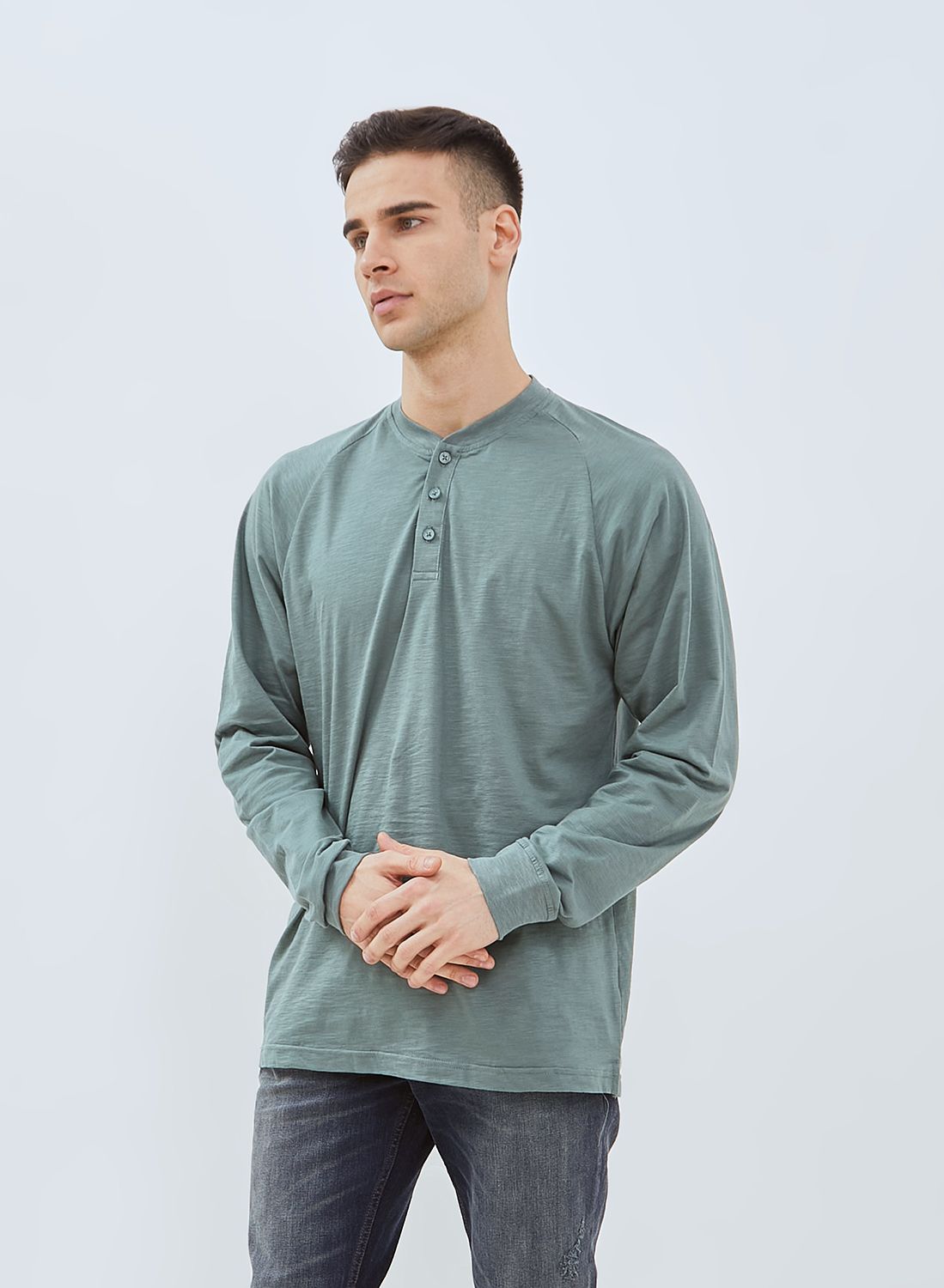 This long sleeve henley top sounds like a comfortable and stylish piece! The 3-button opening on the front adds a classic touch, while the ribbed sleeves bring a bit of texture and structure to the overall design. It seems like a great shirt to layer or wear casually on its own.