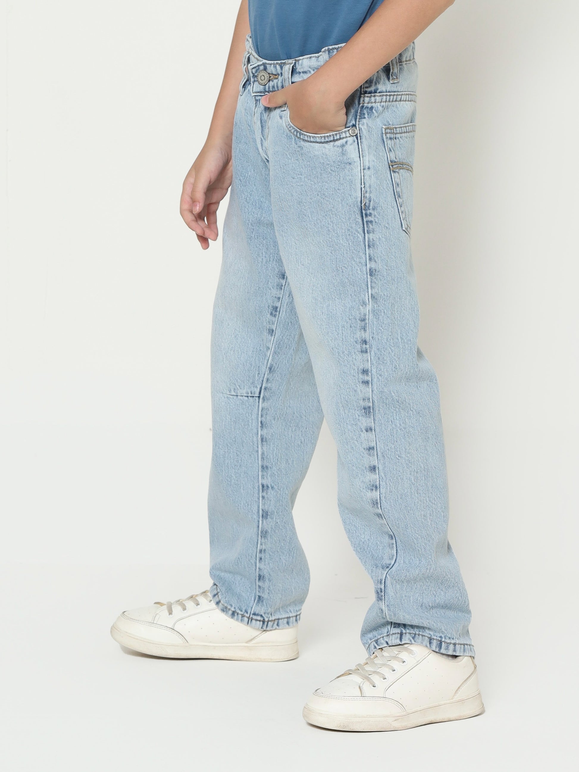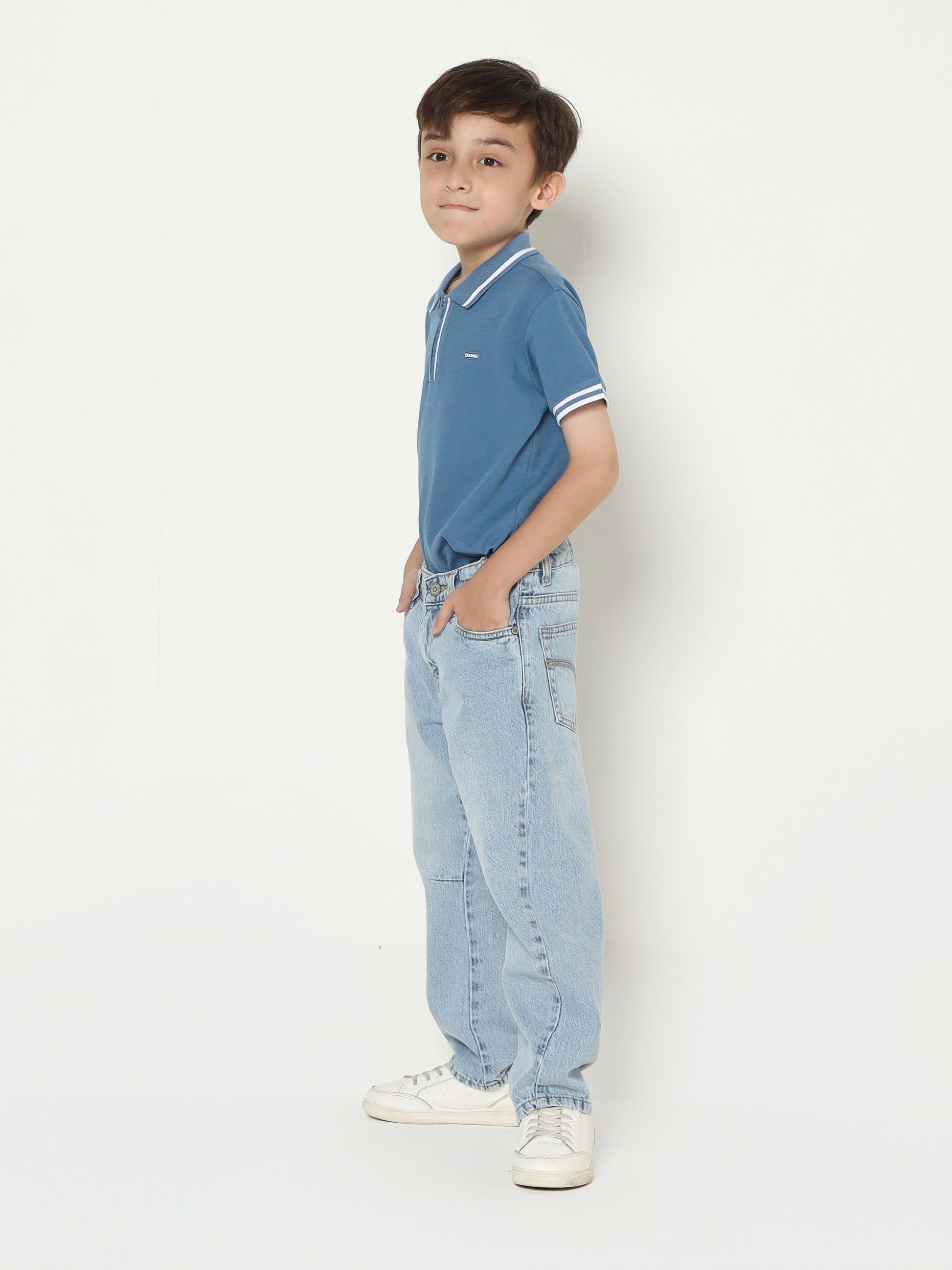 These boys denim jeans are crafted from high quality denim fabric, designed for durability and everyday comfort. Featuring a relaxed straight fit with a light wash effect, they deliver a modern casual look that’s easy to style. The elastic waistband ensures flexibility, making them practical for active kids while maintaining a cool denim vibe.