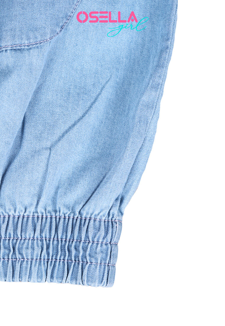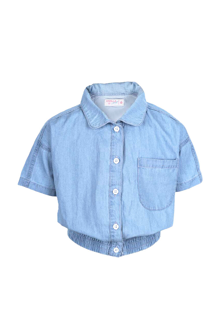 Osella Kids Girl Short Sleeve Shirt with Elastic Waist in Light Blue Wash
