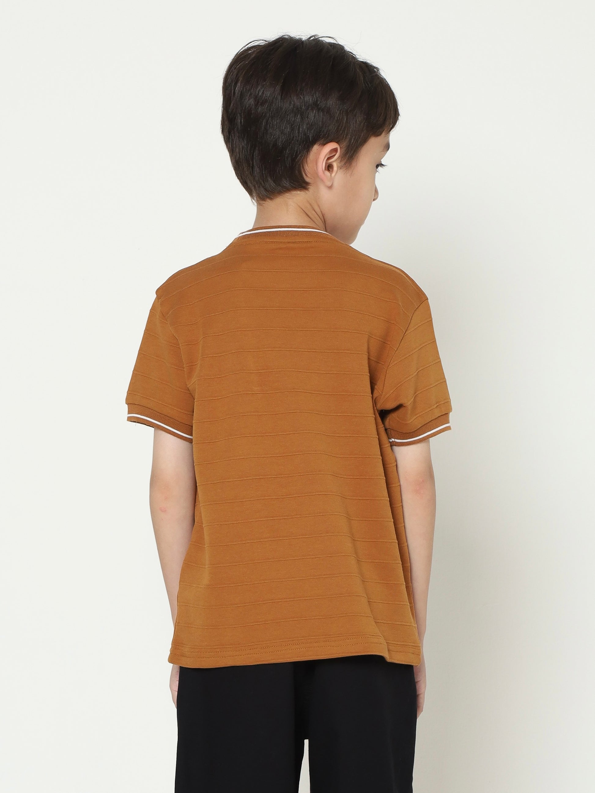 Crafted from premium interlock textured fabric, this boys' short sleeve tee offers the perfect balance of comfort and durability. With its sleek minimal design, subtle horizontal texture, it brings effortless style into everyday wear. The contrast ribbed neckline and sleeves add a touch of sporty flair, making it a must-have for casual days with active energy.