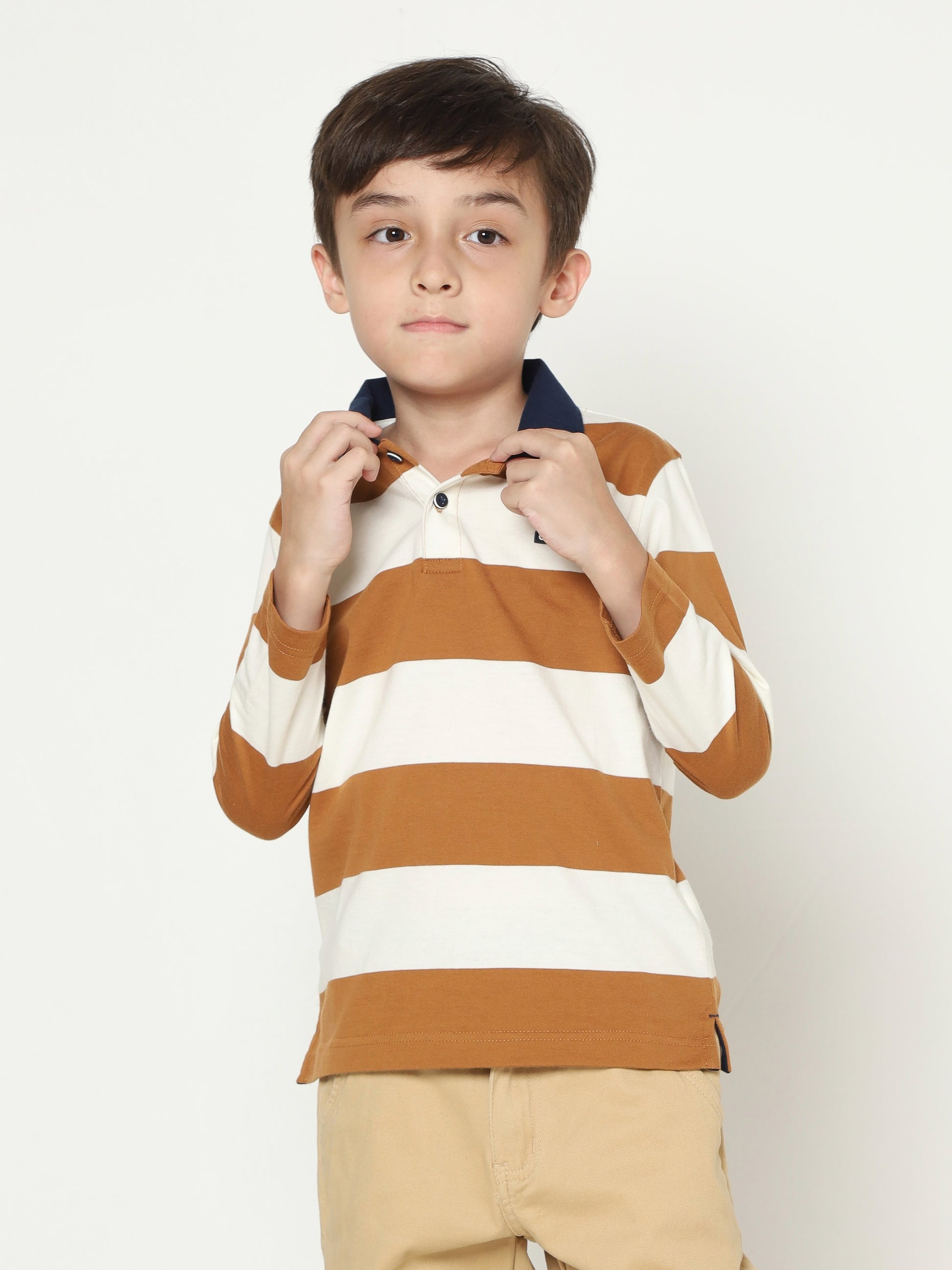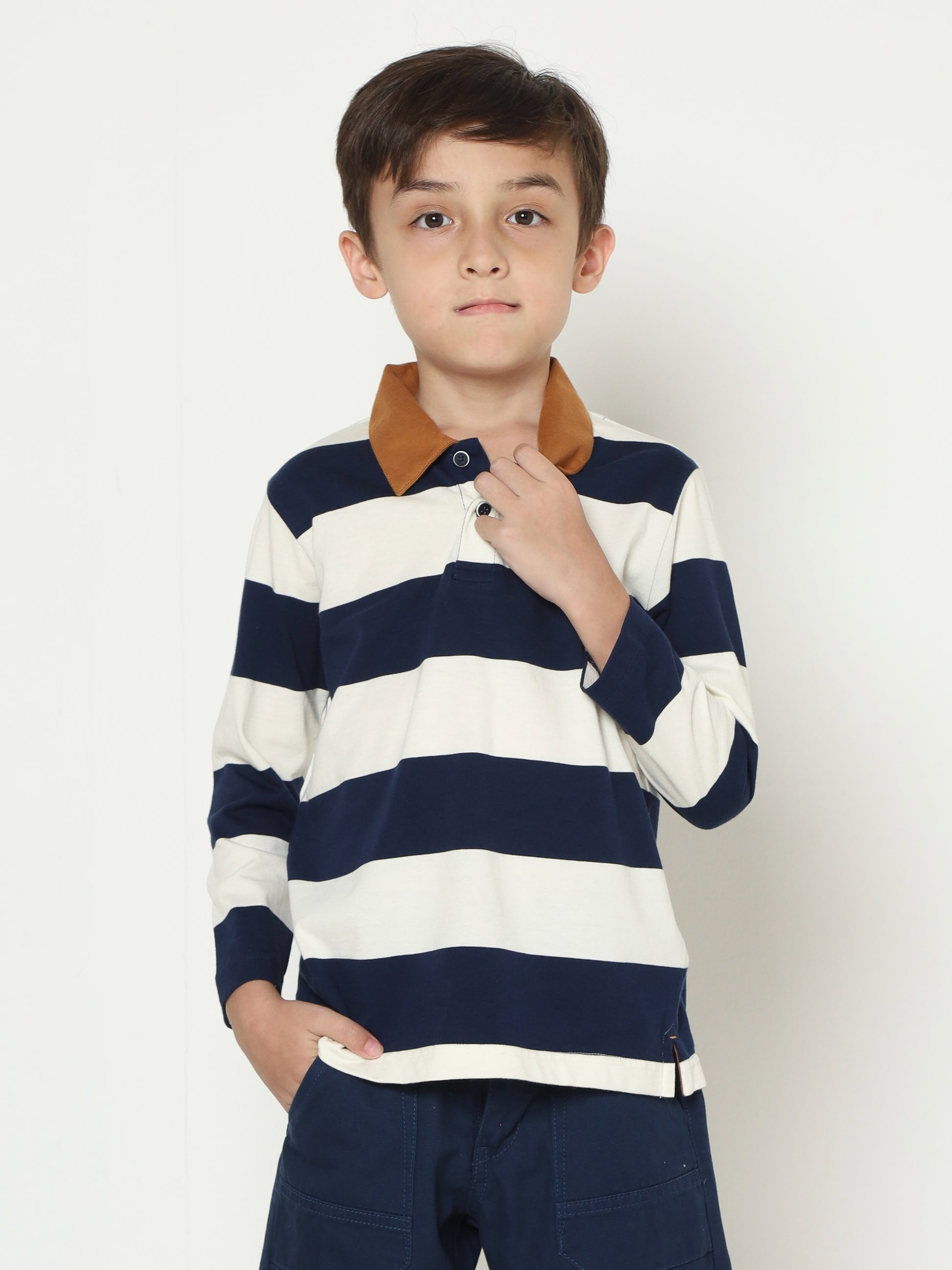 This boys long sleeve polo shirt is made from Cotton Yarn Dyed fabric, ensuring vibrant, long-lasting stripes that won’t fade over time. The breathable cotton material provides all day comfort, while the contrast collar and neat placket give it a smart, preppy look. Perfect for both playdates and family outings.
